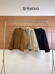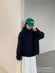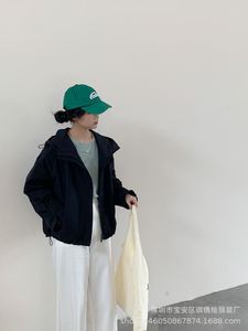 琪镌绘制秋季款连帽抽绳外套日系简约工装休闲长袖冲锋衣女85342