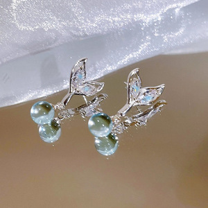 サマーフィッシュテールビーズイヤリング 925 シルバー針新しいスーパーフェアリーイヤリングライト高級ハイエンド気質多用途イヤリング女性用