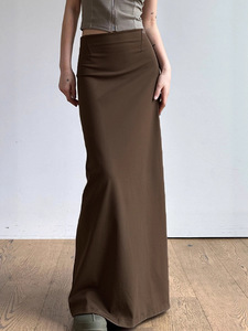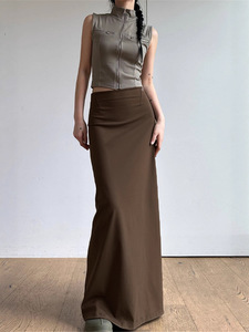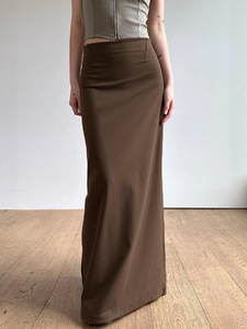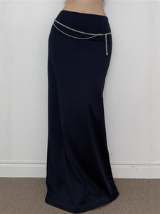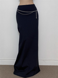 欧美设计感中高腰个性纯色针织修身一片式开衩显瘦收腰半身长裙