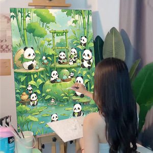 デジタル油絵 diy 着色絵画充填着色子供パンダ手描きアクリル油絵