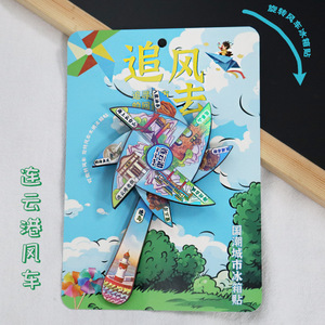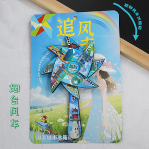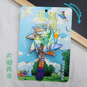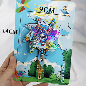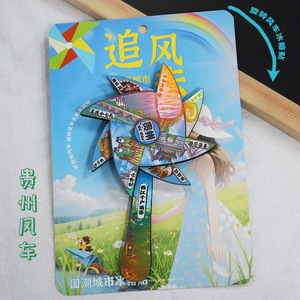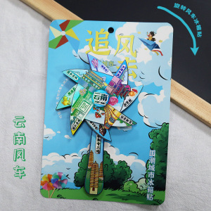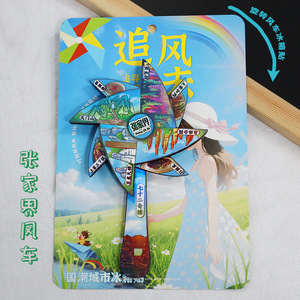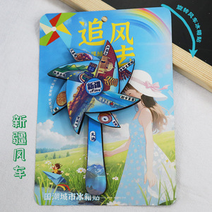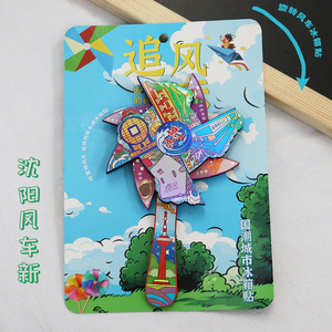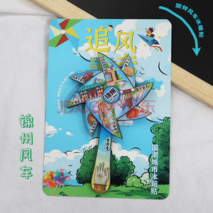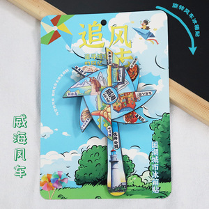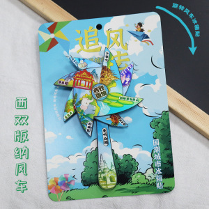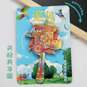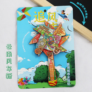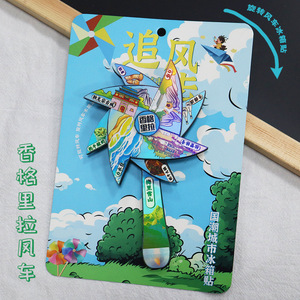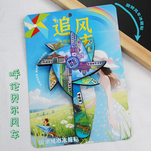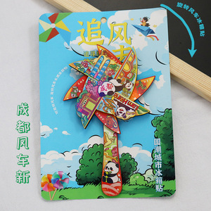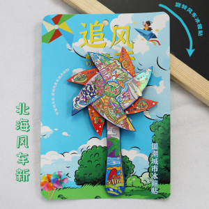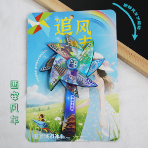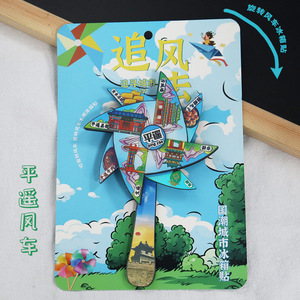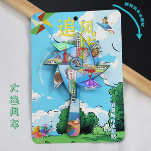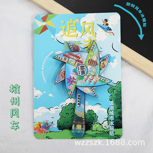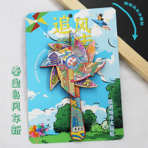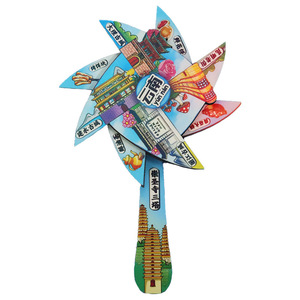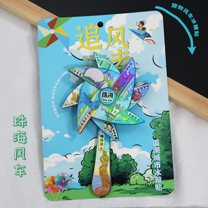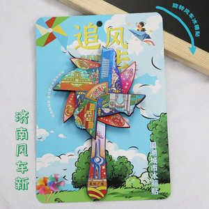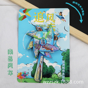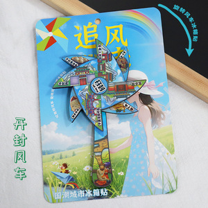 国潮城市转动风车系列冰箱贴木质旋转风车文创旅游纪念品原创设计