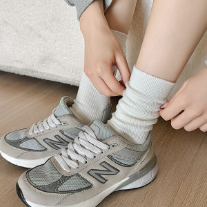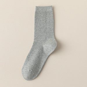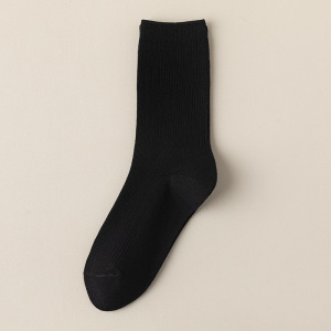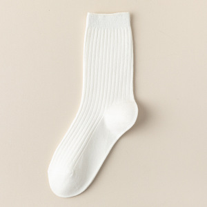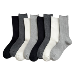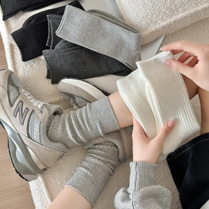双针纯棉袜子女四季款纯色堆堆袜简约百搭黑白灰中筒袜ins潮长袜
