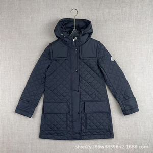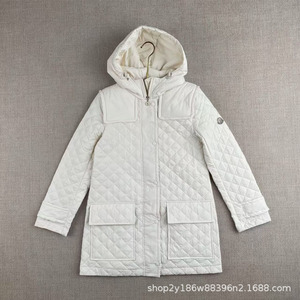 2025秋冬新款时尚菱格纹薄中长款连帽棉服外套女