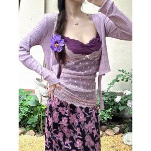 法式休闲防晒开衫女夏季新款穿搭长袖蕾丝吊带设计感连衣裙
