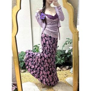 法式休闲防晒开衫女夏季新款穿搭长袖蕾丝吊带设计感连衣裙三件套