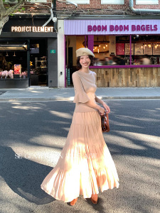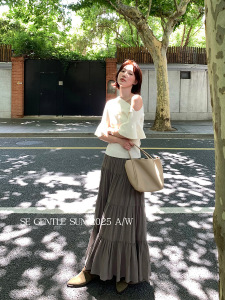 Xiuxixi 2025 秋の新白ラベル気質プリーツハイウエストスカートフレンチロングスカート女性のための 85253