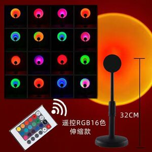 七彩遥控16色网红日落灯升降便携氛围投影黄昏余晖拍照夕阳落日灯