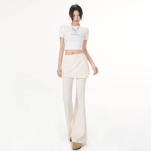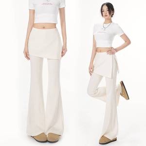 批发韩版弹力设计感假两件显瘦显高微喇叭裙裤