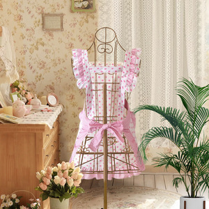 新しい甘いピンクの小さなシェフエプロンセット女の子防汚エプロンピンク水玉模様ケータリング作業エプロン