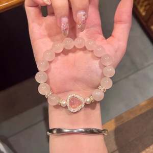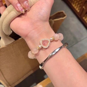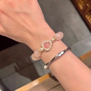 熊的珍宝珠粉柚佛公手串天然粉水晶轻奢小众闺蜜甜美手链抖音爆款