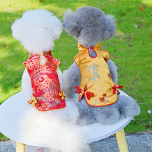 新中式宠物旗袍国风汉服旗袍裙小狗狗猫咪秋季宠物比熊衣服新年装
