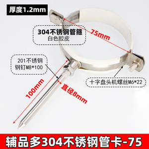 追加アクセサリー: 304 ステンレス鋼パイプ クランプ-75 鋼釘 8*100