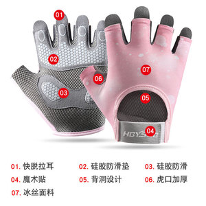 女性用スポーツおよびフィットネスハーフフィンガーグローブ、トレーニング、滑り止め、抗コケ、バーベルライディング、エアヨガ、スピニング