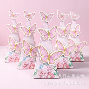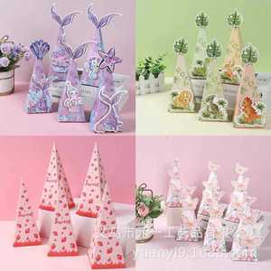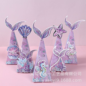 现货三角形糖果盒美人鱼蝴蝶生日派对礼品盒包装喜糖盒节日糖果盒