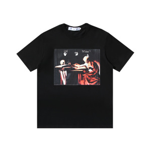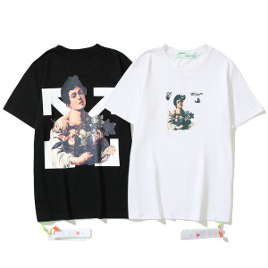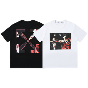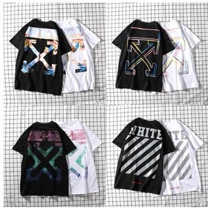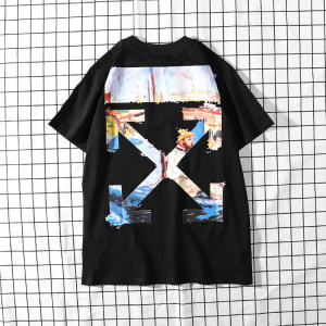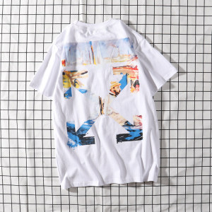オフオウホワイト モネ油絵 アロー Tシャツ 男女同型 ゆったり カップルウェア 限定 半袖 トレンド 19ss