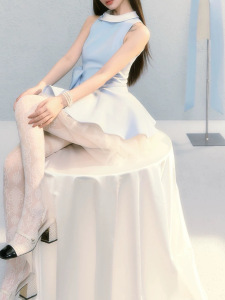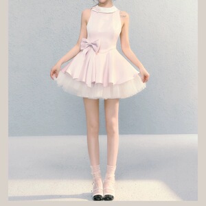 在逃公主蓬蓬裙网纱拼接法式赫本收腰芭蕾风巨好看连衣裙