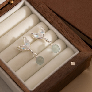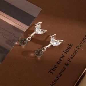 女性用シルバーニードルダイヤモンドフィッシュテールイヤリング、軽くて豪華なニッチアイスクリスタルペンダント、エレガントでファッショナブルなデザイン、多用途のイヤリング