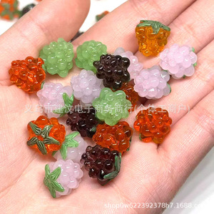 草莓葡萄琉璃珠可爱ins手绘玻璃珠子DIY跨境饰品手工制作用品