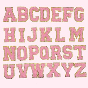 Amazonクロスボーダー専用の刺繍文字布ステッカー、衣類装飾アクセサリー、グリッターゴールドエッジ刺繍布ステッカー、アイロン