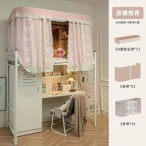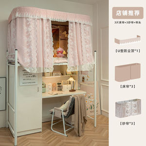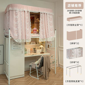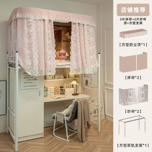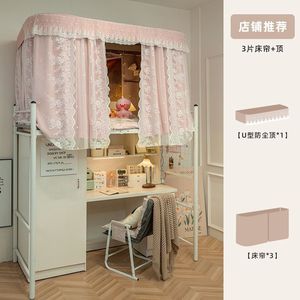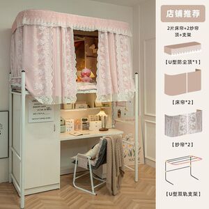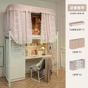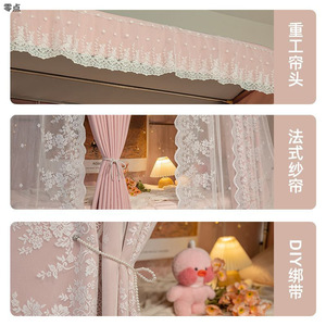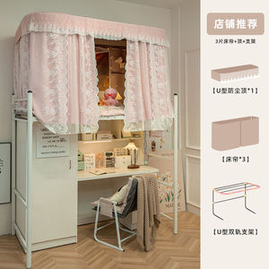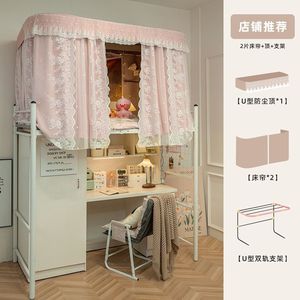 フレンチプリンセススタイル女子学生ベッドカーテンU字型トラック寮二段ベッド遮光カーテン寝室蚊帳一体型