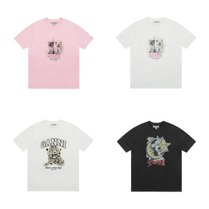高品質 2025 夏の新トレンドニッチ GAN 漫画プリントカジュアルラウンドネックルーズ半袖 T シャツ男性と女性用