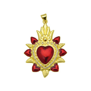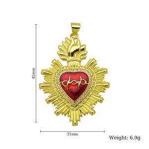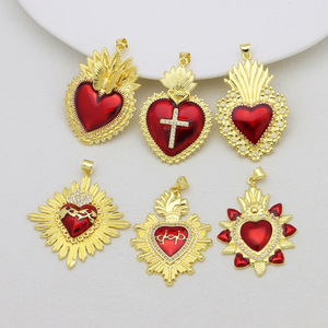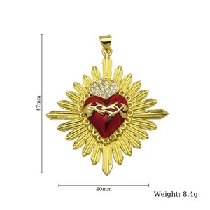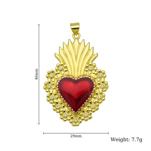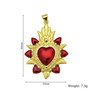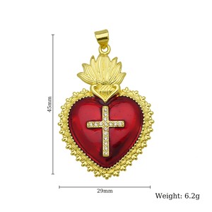 新品设计感皇冠18K保色电镀十字架红彤彤爱心桃心项链心形吊坠