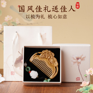 檀木梳荷花雕花顺发梳女士家用美发梳伴手礼节日送老师长辈礼品梳