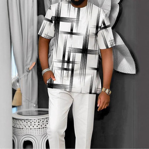 ストライプチェック柄メンズスーツ夏半袖ズボンカジュアル 2025 新しい通気性ファッション