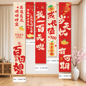 男女儿童通用百天场景布置装饰条幅过满月挂布百日宴仪式拍照道具