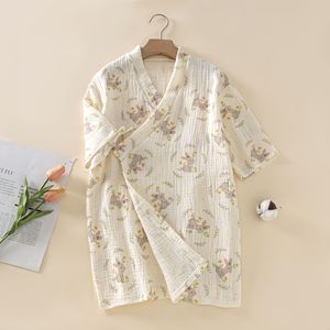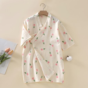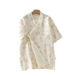2025新款儿童纱衣纯棉短袖四季双层棉纱男女同款婴幼居家睡衣浴袍