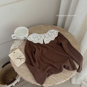 大小ロールガールズエレガントスローテイムスリムフィットボトリングシャツ元気でかわいいレースフリルラペルウォームトップトレンディ