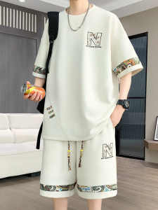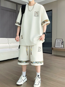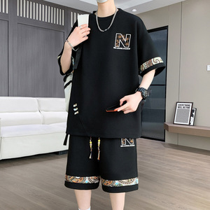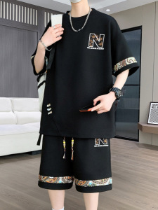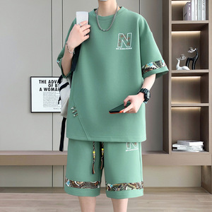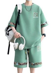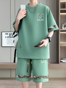夏の人気のトレンディなブランドカジュアルスポーツスーツメンズティーンエイジャーファッション多用途ゆったり大きいサイズツーピース学生スーツ