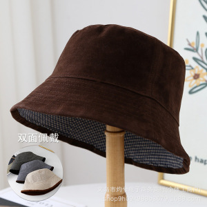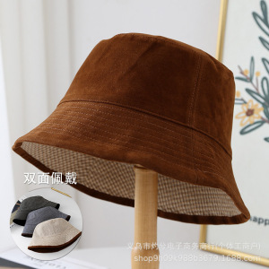 日系复古双面戴牛仔渔夫帽女夏季显脸小百搭时尚遮阳防晒水桶盆帽