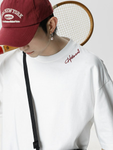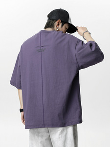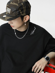 立体継ぎ接ぎ半袖Tシャツメンズ夏新作ゆったりトレンドブランドコントラスト刺繍アメリカン半袖Tシャツ