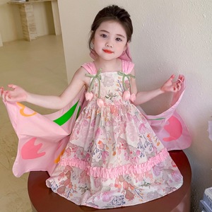 子供服女の子牧歌的なスタイルプリンセスベストドレス子供のファッショナブルな女の赤ちゃんサスペンダースカート蝶の羽のドレス
