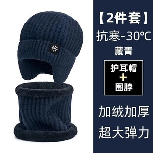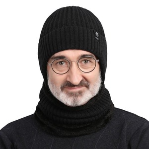 中高年男性の冬用暖かい耳保護帽子、高齢者、お父さん、おじいちゃん、冬用の厚いニットウール帽子