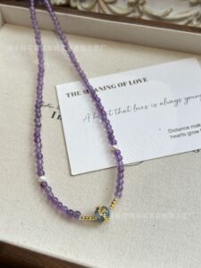 巧恩天然水晶项链紫水晶金太阳银项链纯银锁骨项链爆款