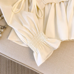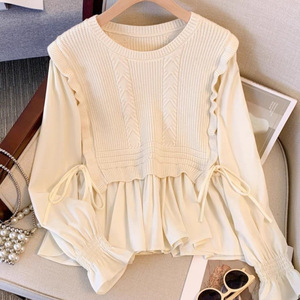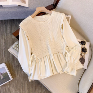 温柔系假两件拼接针织衫女设计感小众早秋软糯毛衣宽松遮肚子上衣