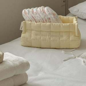 ins新款母婴用收纳篮方格绗缝收纳篮可爱婴幼儿玩具用品收纳