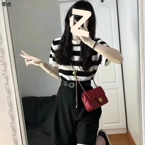 カーキカーゴショーツレディース夏薄手ハイウエストスリムルーズワイドレッグミッドパンツカジュアルスーツ5点パンツトレンディ