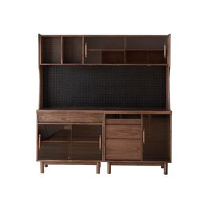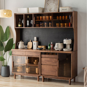 北美实木餐边柜洞洞板饭厅靠墙厨房高柜橱柜黑胡桃木定制靠墙储物