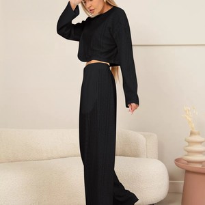 クロスボーダー2025新作ヨーロッパとアメリカのレディーススーツ、ファッショナブルでシンプルなスタイル、スリムでルーズなプルオーバー長袖ズボン