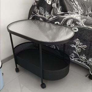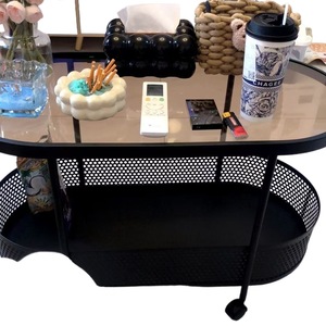 简约沙发小户型椭圆边几客厅奶油风茶几小桌子卧室玻璃移动小推车