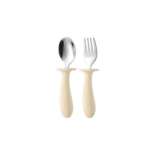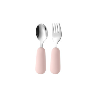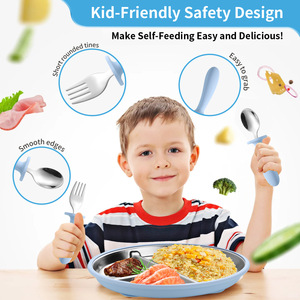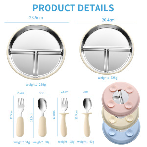 国境を越えた子供用食器セットシリコンカバーステンレス鋼ディナープレート脂肪低減プレート幼児トレーニング食事ショートハンドルスプーンとフォーク
