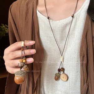 新中式国风长款橡果吊坠项链女复古民族风禅意设计毛衣链颈链配饰