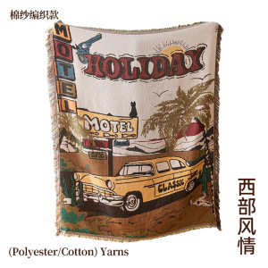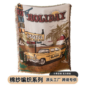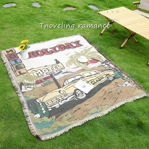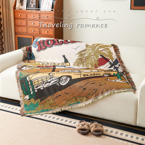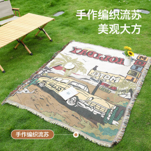 现代简约油画装饰提花挂毯户外露营毯四季通用一片式沙发巾盖毯子