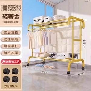 晾衣架落地家用晒衣架室内凉衣服可移动卧室晾衣杆阳台晒被子神器
