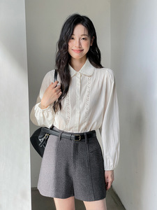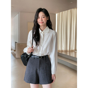 [侯麦の秋] フレンチレトロレースシャツレディース2025秋新作長袖トップスY1122F