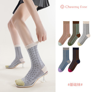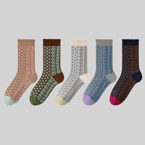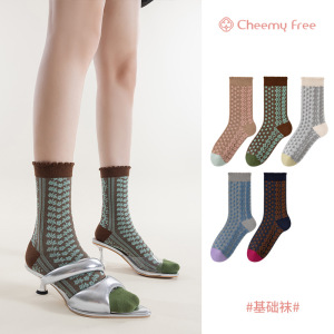 CHEEMY FREE 春と秋の靴下女性のレトロトレンドインデザインミッドカーフソックス韓国レリーフ暖かいパイルソックス