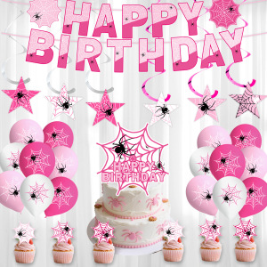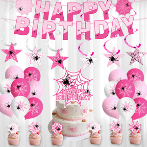 新しいピンクのスパイダーマンをテーマにした誕生日パーティーラテアート吊り下げレインフラワーカーテン食器セット雰囲気装飾